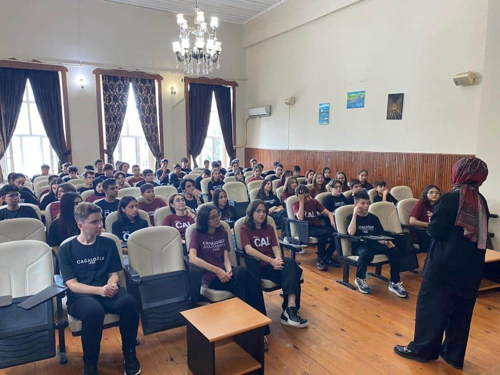 Cağaloğlu Anadolu Lisesi Hazırlık sınıfı öğrencilerimizin okul kültürüne sağlıklı bir biçimde uyum sağlamalarını desteklemek amacıyla düzenlenen “Uyum Programı”, Rehber öğretmenlerimiz Hidayet Aslan ve Ayşe Gülay Küçük’ün rehberliğinde, özveriyle çalışan okul tanıtım ekibimizin katkılarıyla başarıyla gerçekleştirildi. Bu programla birlikte öğrencilerimiz, sadece fiziksel bir mekâna değil; köklü bir geçmişe, güçlü bir akademik geleneğe ve sahiplenici bir topluluk ruhuna da ilk adımı atmış oldular. Emeği geçen öğretmen ve öğrencilerimize teşekkür ediyoruz.